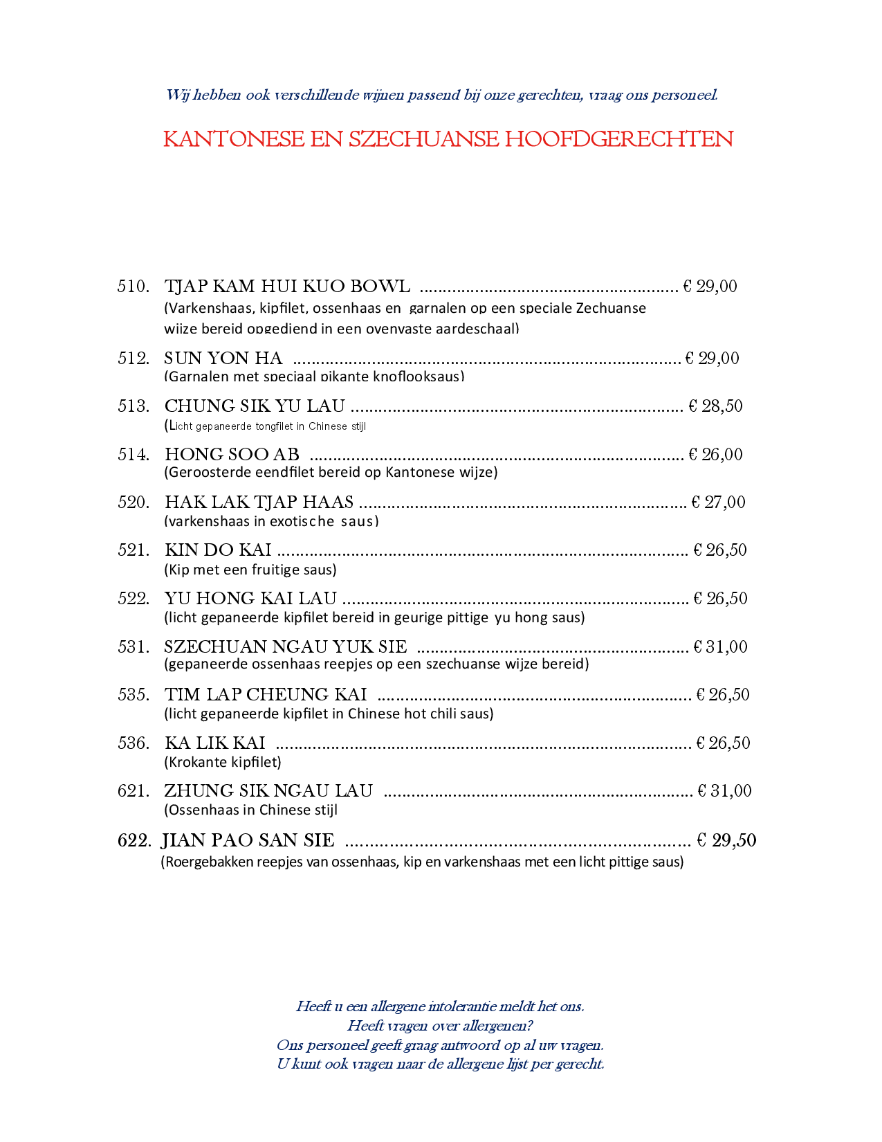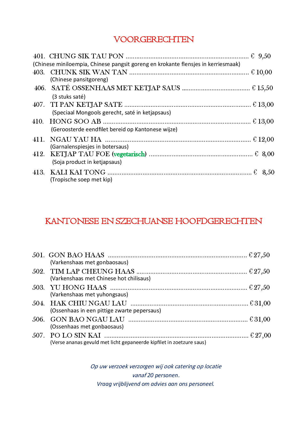 KANTONESE EN SZECHUANSE HOOFDGERECHTEN